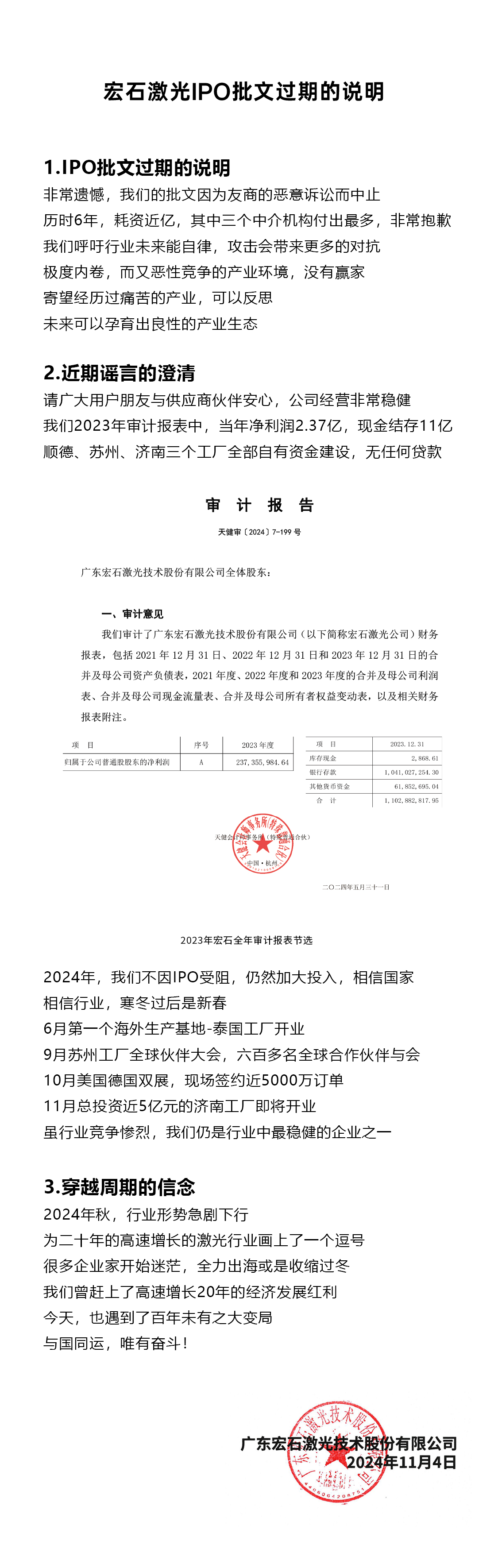 宏石激光IPO批文過期的說明